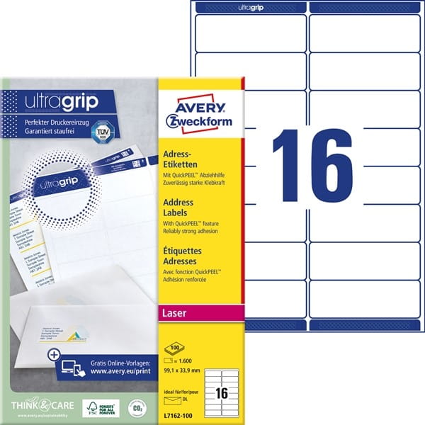Etykiety adresowe Avery Zweckform 99,1 x 33,9 mm, 1600 etykiet /L7162-100/