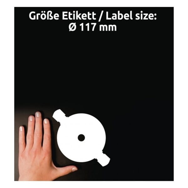 - Etykiety do indywidualnego oznaczania płyt CD w rozmiarze SuperSize etykiety zakrywają całą powierzchnię płyty, dając więcej miejsca na informacje i grafikę