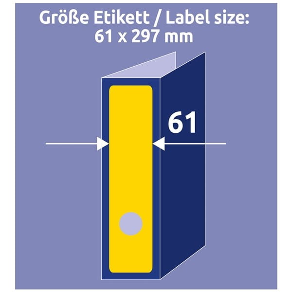 Etykiety na segregatory Avery Zweckform; A4, 20 ark./op., 61 x 297 mm, żółte /L4755-20/