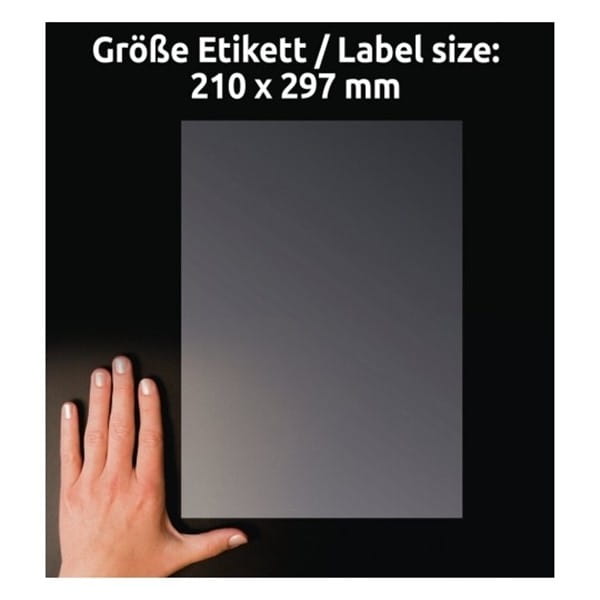- Rozmiar etykiety 210 x 297 mm
