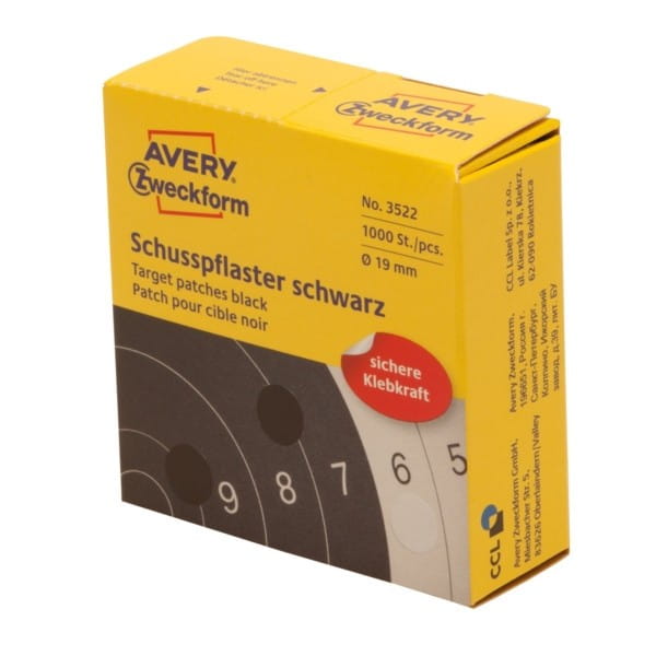 Naklejki do tarcz strzelniczych Avery Zweckform; 1000 szt./op., O19 mm, czarne /3522/